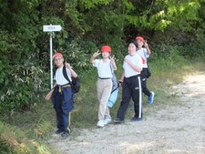 暑くもなく寒くもないちょうどよい気候に恵まれ、5年生は根の上研修に出かけました。1日目の午前の活動は、根の上高原を散策する「オリエンテーリング」です。グループで協力してチェックポイントを回りました。