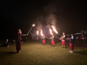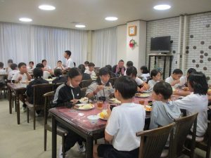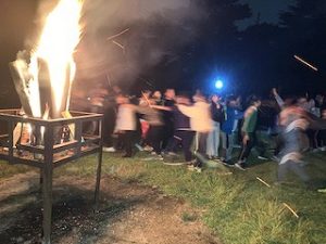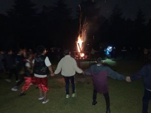 根の上研修1日目の夜の様子です。夕食を美味しくいたいた後、キャンプファイヤーではみんなで楽しく盛り上がりました。