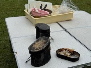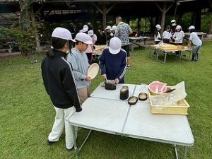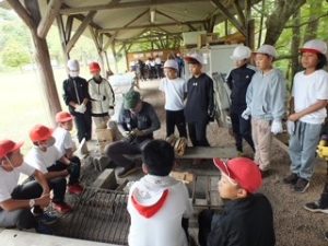 昨日の活動を全力で取り組んだ子どもたち。昨晩はぐっすり眠れ2日目の活動に入りました。今日はカレー作りです。薪に火をつけ、野菜や肉を切り、鍋と飯盒でご飯とカレーを作ります。