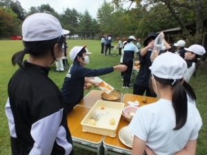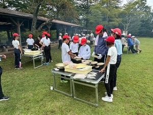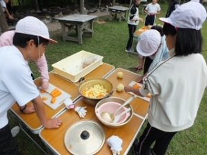 グループで協力して、美味しいカレーができました。みんなでいただきます。