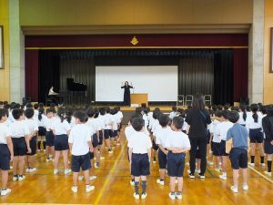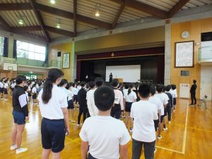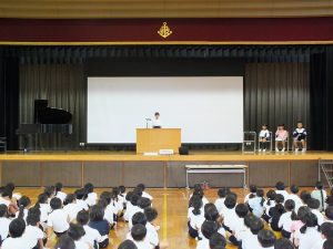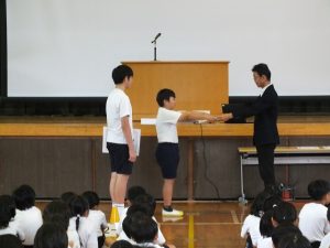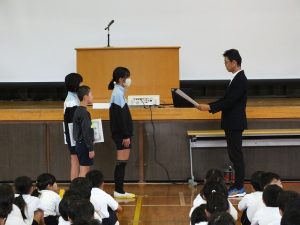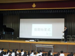 10月14日(火)から後期が始まりました。1時間目に始業式を行いました。校長先生のお話に続いて、児童代表として、1年生と3年生の子4名が発表しました。どの子も堂々とした話しぶりで大変素晴らしかったです。