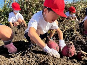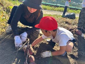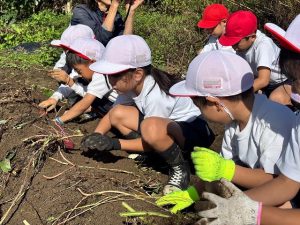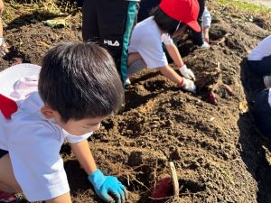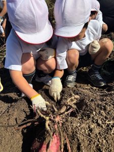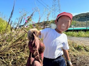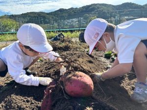 1年生は、23日に土岐小学校に隣接するひろがり畑のさつまいもを掘りました。春に自分たちで苗植えをしたさつまいもが大きく育ちました。早速蒸して食べました。子どもたちは「美味しい!」といって満足した様子でした。