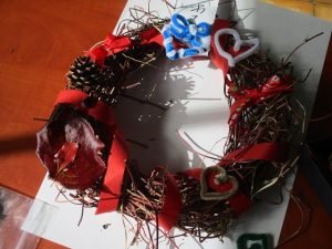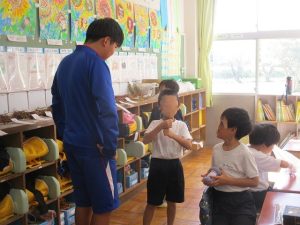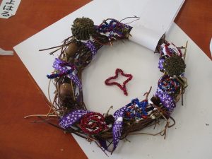 本校卒業生2名が、職場体験学習として28日(火)29日(水)の2日間土岐小学校に来ています。1年生の教室に入り、担任の先生の補助をしたり、子どもたちと一緒に活動をしたりしています。休み時間には子どもたちと一緒に元気よく遊びました。(写真は生活科「秋見つけ」で見つけた素材を使って作ったリースです)
