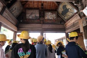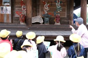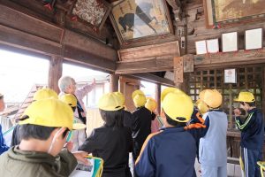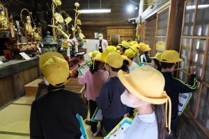 3年生は、10月31日の総合的な時間の学習に、ふるさと学習の一環として地域の桜堂薬師の見学に出かけました。境内に飾ってある絵馬や観音像などを見たり、保存会の方から説明を聞いたりして学びを深めました。自分たちが住む土岐町にこんなにすごい史跡があるのだと子供たちはびっくりしていました。