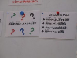11月5日(水)に、2年生は土岐町にある土岐児童センターまで歩いて出かけ施設の見学をさせてもらいました。館長さんから児童センターの役割や約束等のお話を聞いてから、館内を見せてもらいました。途中、外の遊具や砂場で遊ばせてもらいました。ここを利用したことがある子もいましたが、始めて来たという子が多く、いい体験ができました。