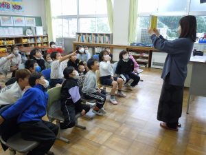 今年も図書館まつり期間中に、1年生から6年生まですべての学級で市民図書館の方に来ていただき「ブックトーク」を行いました。図書館にあるたくさんの中から、子どもたちの興味のある本をいくつかお話を交えながら紹介してくださいました。紹介してくださった本は暫くの間教室に貸していただけたので、子どもたちは早速手にとって読んでいました。