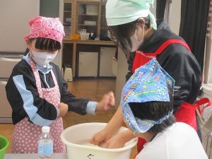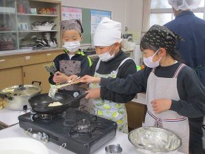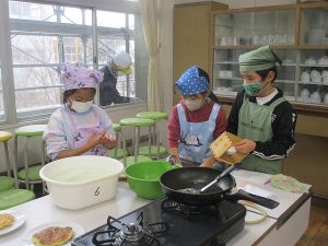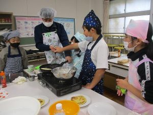 3年生は、10日(1組)、11日(2組)にJAの方に来ていただき、大豆から豆腐を作りました。鍋で大豆を煮ることから「にがり」を入れて固めるところまで教えていただきながら上手にできました。おからはホットケーキにしました。豆腐もホットケーキも美味しく出来上がり子どもたちは大満足でした。