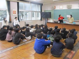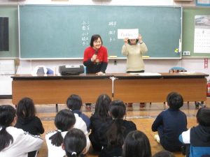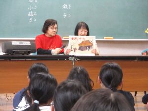 2月6日(金)朝活動の時間に、5年生が地域の方から「英語の読み聞かせ」をしていただきました。子どもたちがよく知っている「かさじぞう」を日本語と英語で読んでくださいました。はじめに文中に出てくる簡単な単語を紹介していただいた後、本文の読み聞かせをしていただいたため、途中で出てくる英単語を聞き取ることができた子もたくさんいたようです楽しい時間になりました。