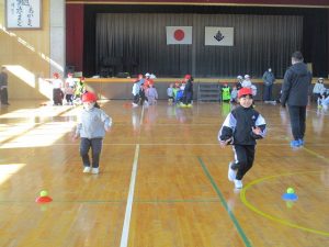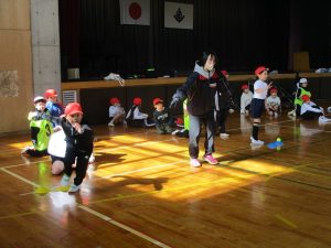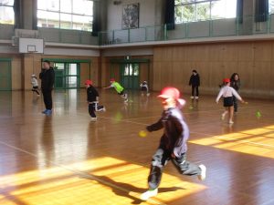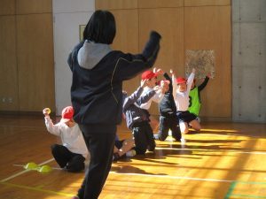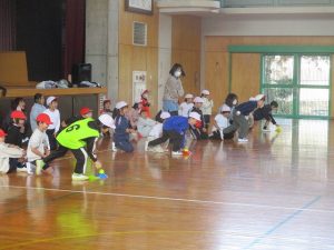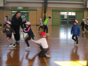 2月10日(火)に、今年度2回目のACP(アクティブ・チャイルド・プログラム)教室を行いました。講師の中京学院大学の先生と学生さんと一緒に思いっきり体を動かしました。今日のメニューは、①全身じゃんけん、②宅配便ゲーム、③クマと人間の3種類のゲームです。終わった後に、子どもたちは「楽しかった!」「もっとやりたい!」と言っていました。